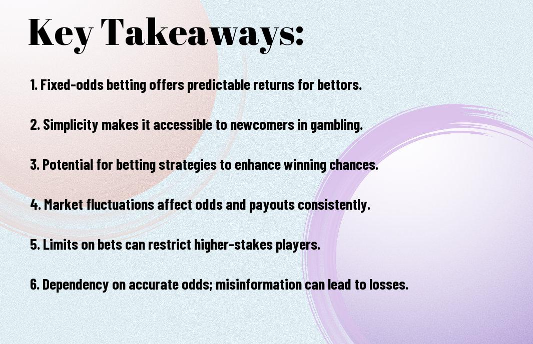Conclusively, as you weigh the pros and cons of fixed-odds betting, you will find that your understanding of its benefits and limitations is key to making informed decisions. You can leverage fixed-odds betting to your advantage by managing your risks and maximizing your returns. By considering your options carefully, you can navigate the world of fixed-odds betting with confidence, making the most of your betting experience. Your knowledge will be your greatest asset in this endeavor.