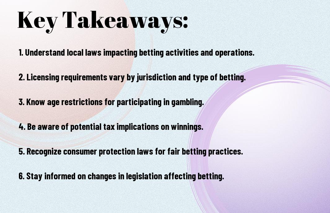 As you navigate the world of betting, your understanding of the legal landscape is vital to ensuring a safe and successful experience. You need to be aware of the regulations that govern betting in your region, as they can impact your ability to place bets and access certain platforms. Your knowledge of these laws will help you make informed decisions and avoid potential pitfalls, allowing you to focus on making smart bets and enjoying the experience.