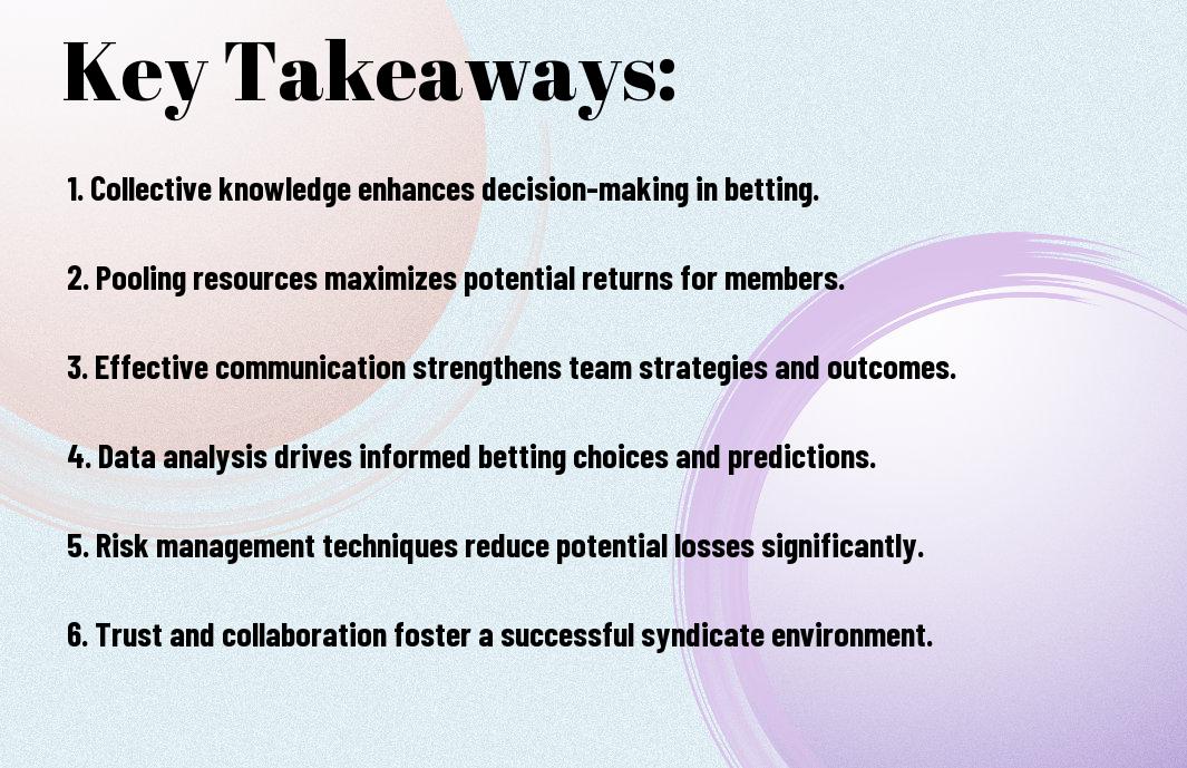Any betting syndicate relies on mathematical models and systems to inform their betting decisions, and as you explore into the world of syndicates, you’ll find that these models are tailored to specific sports and markets, helping you make more informed bets.
